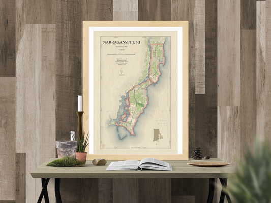 Narragansett Rhode Island Map Art Print HOMETOWN Style