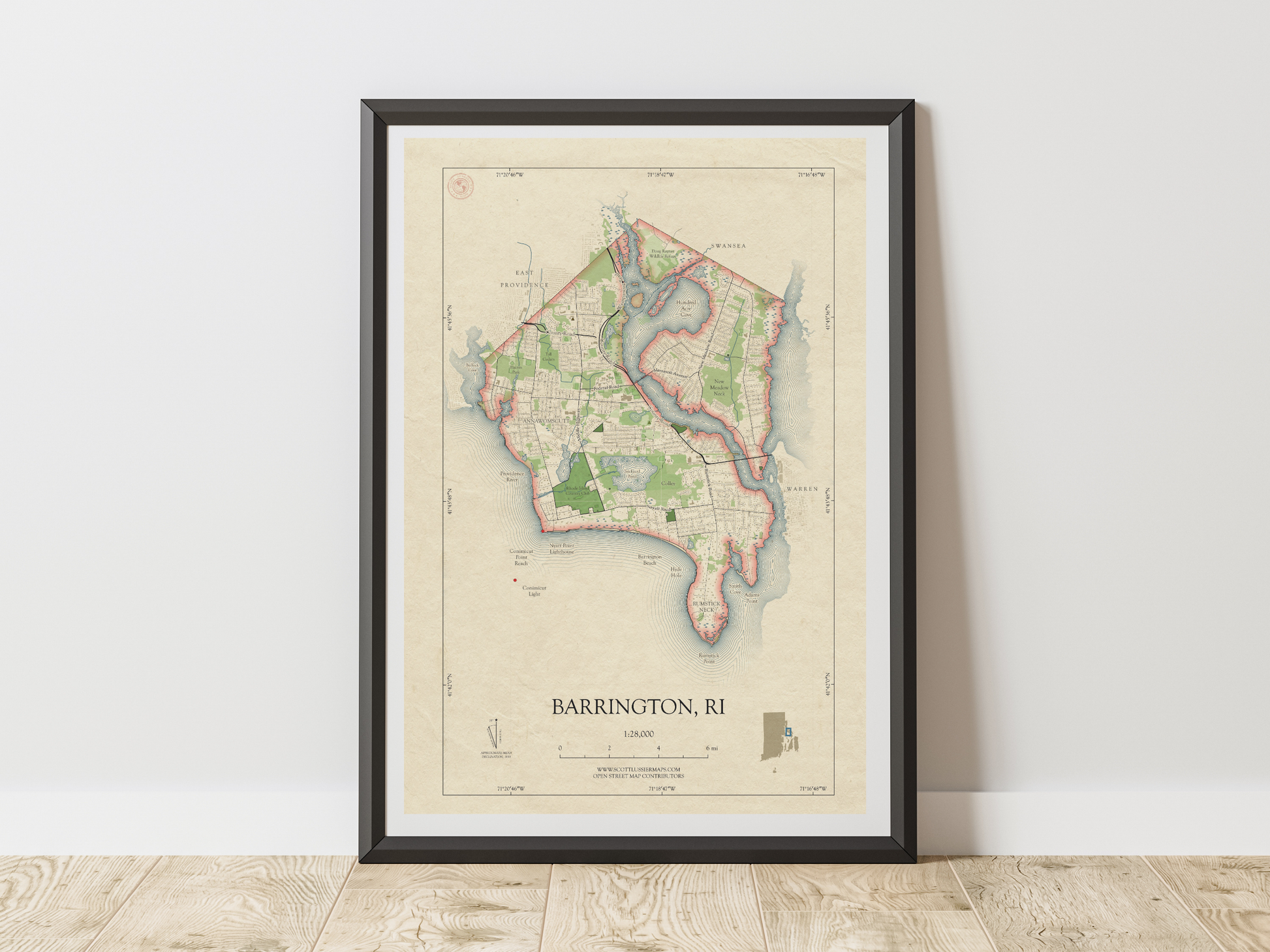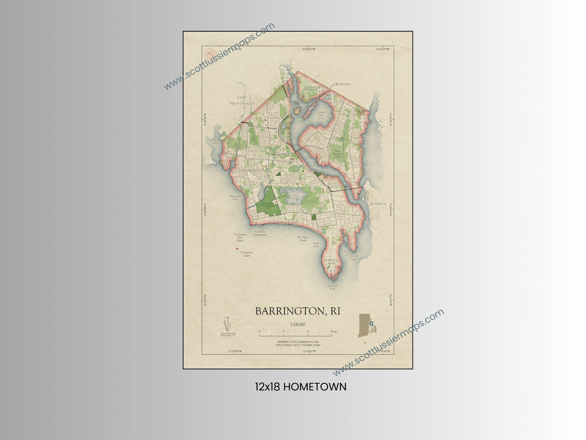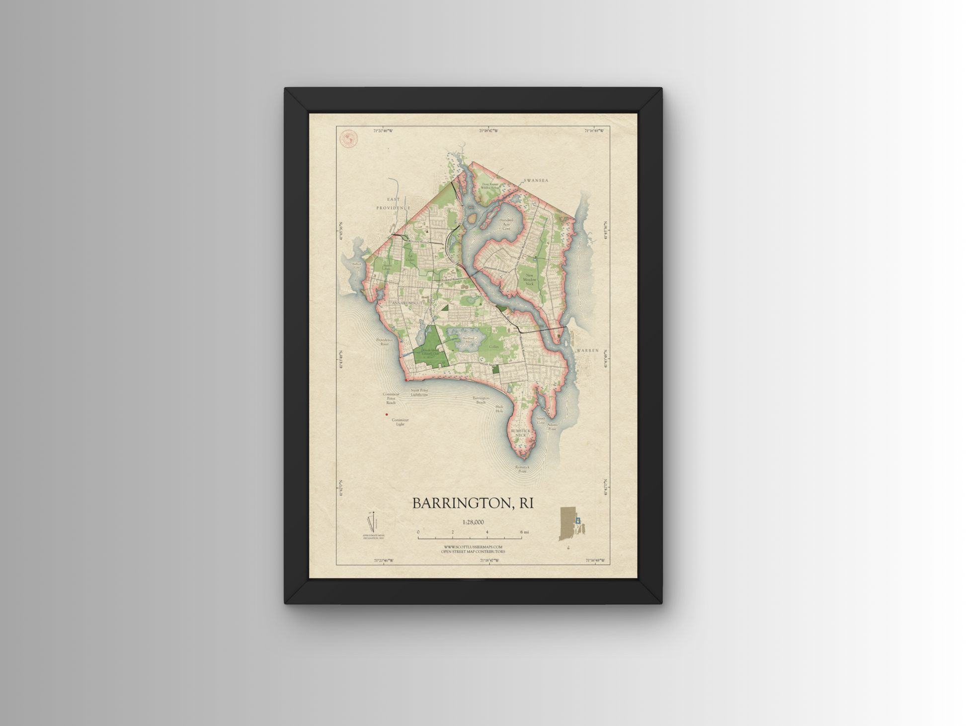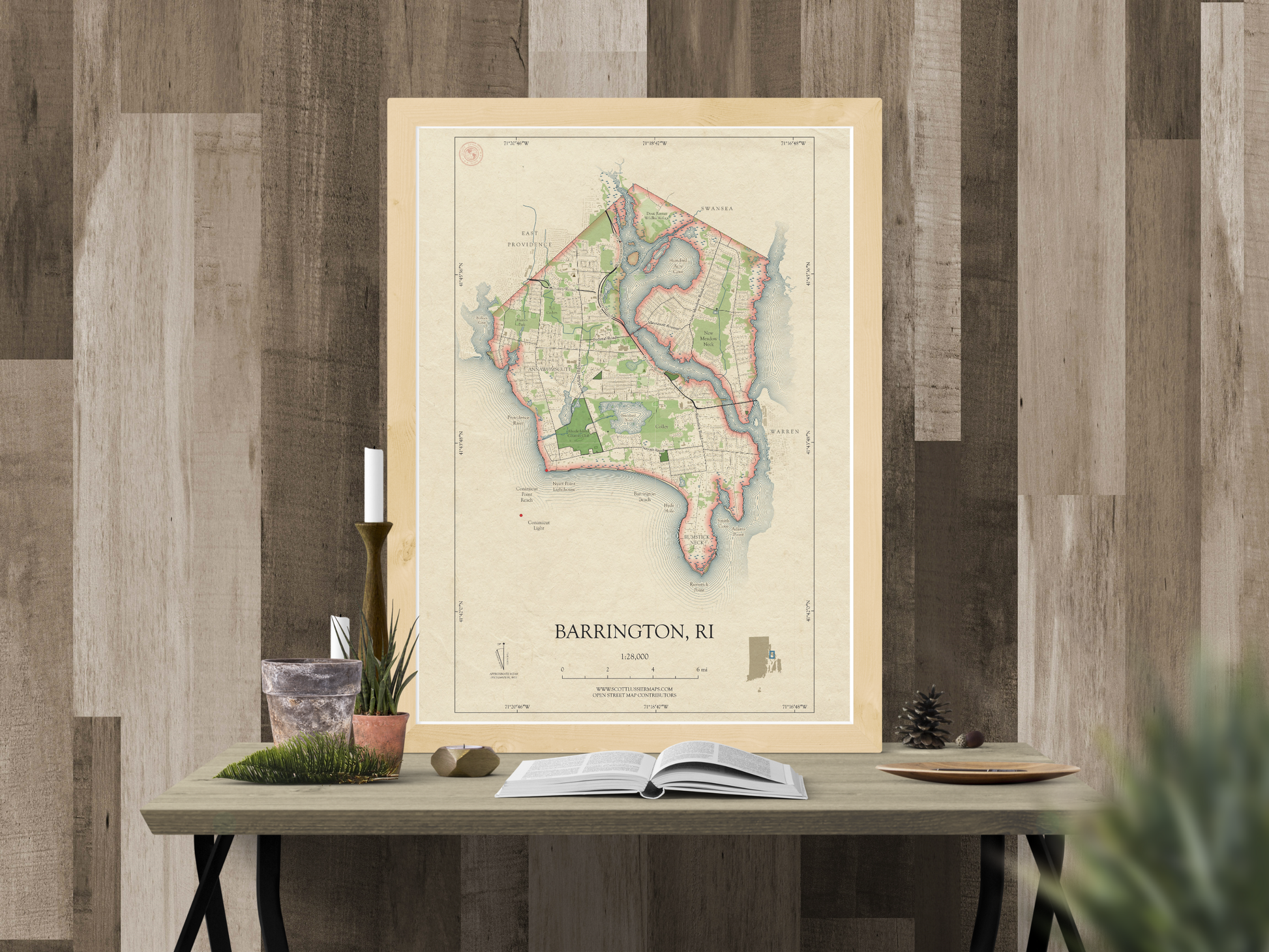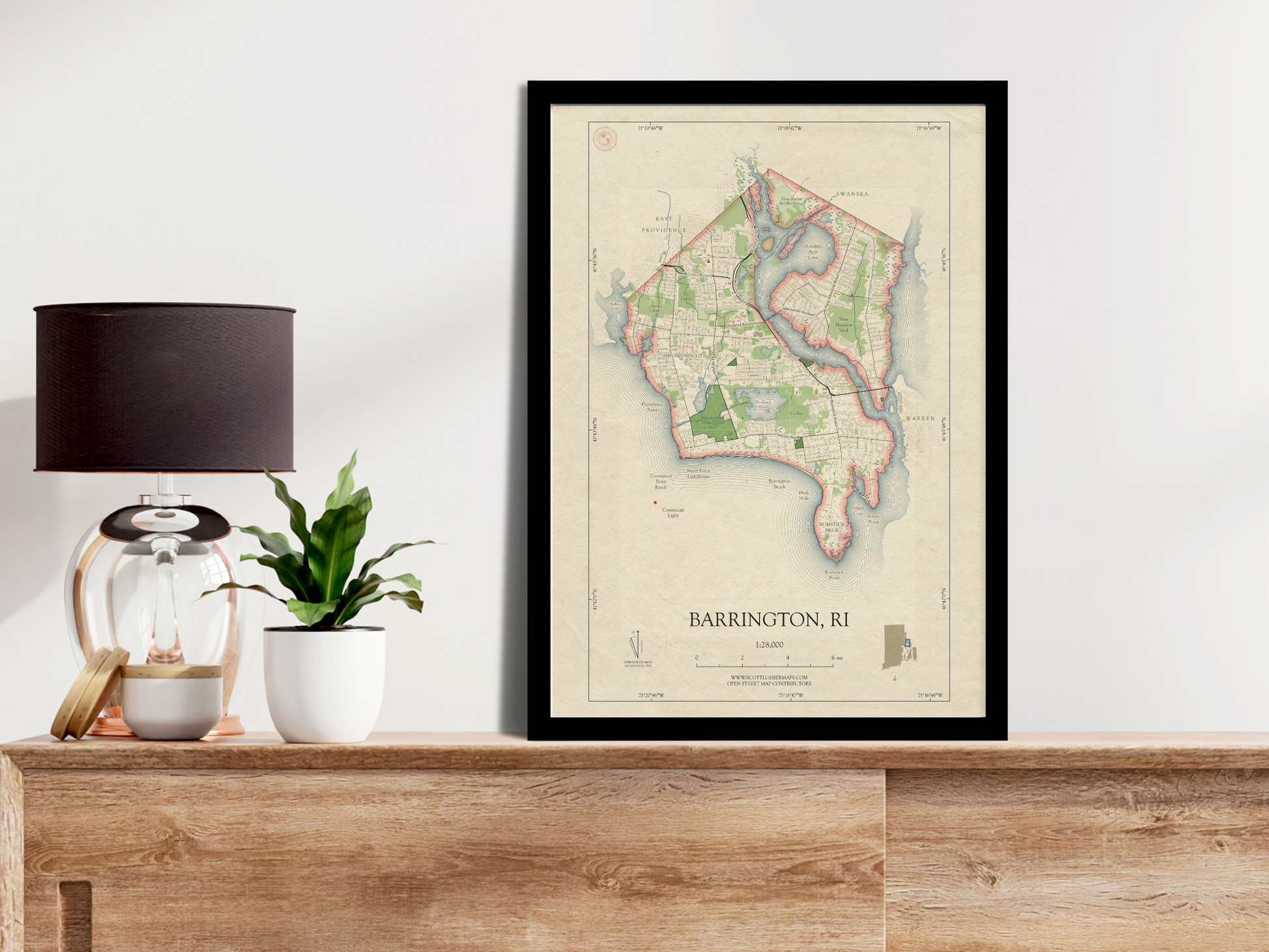 Barrington Rhode Island Map Art Print HOMETOWN Style