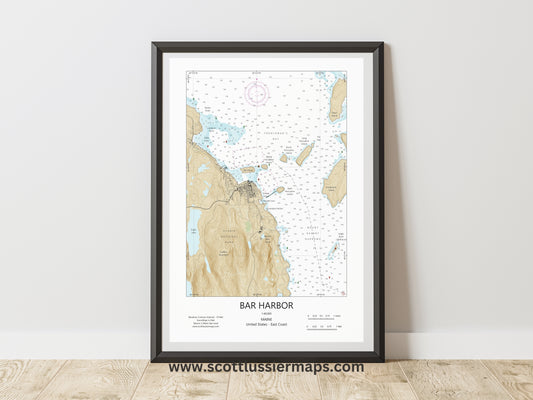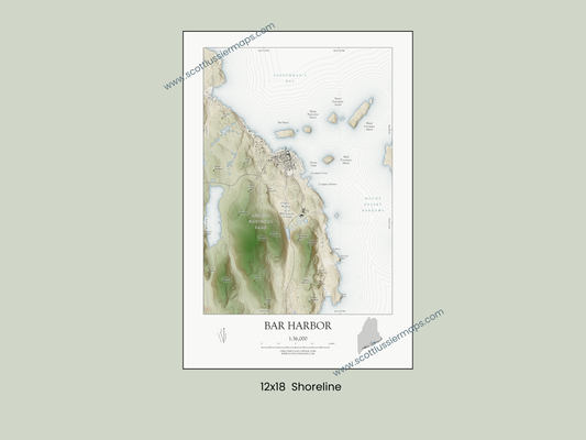 Bar Harbor Maine Map Art Print SHORELINE OR VINTAGE avail in two sizes 0625