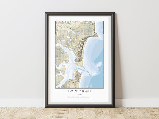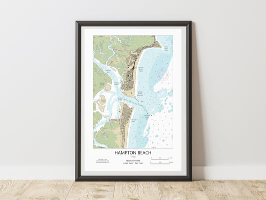 Hampton Beach New Hampshire CHART Map Art Print 0225